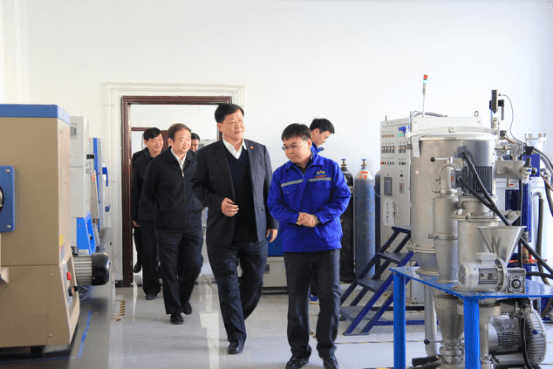 公司總經理趙成龍向朱董事長一行介紹公司研發技術中心情況
