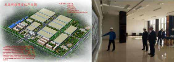 公司董事長王瑛向奧克集團朱董事長一行介紹我公司產業園的未來規劃