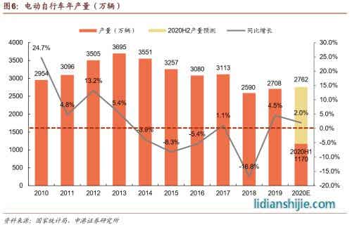 電動自行車市場相對成熟,年銷量穩(wěn)定在3000萬輛左右,在政策和市場的雙重推動下,預(yù)計2020年鋰電池市占率將突破20%,未來三年鋰電池電動自行車產(chǎn)量的復(fù)合增長率將超過30%。
