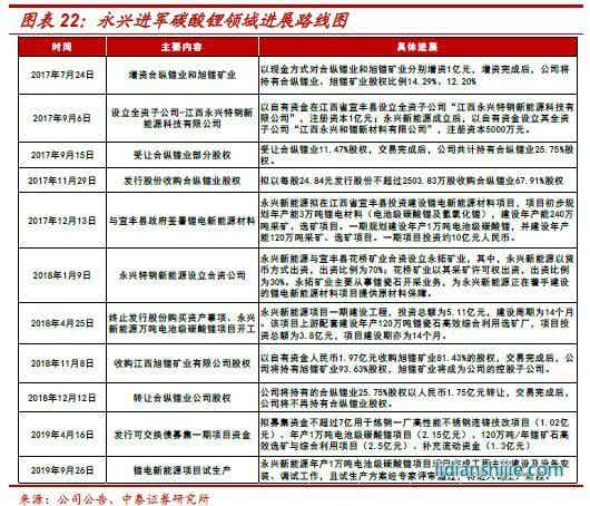 跨領(lǐng)域進(jìn)入碳酸鋰行業(yè):永興雖然長(zhǎng)期深耕不銹鋼棒線材領(lǐng)域,但上市以來(lái),伴隨著融資渠道不斷豐富,公司在做強(qiáng)原有主業(yè)的同時(shí),積極布局第二產(chǎn)業(yè)。經(jīng)歷長(zhǎng)期論證與探索之后,公司于2017年7月實(shí)現(xiàn)對(duì)合眾鋰業(yè)、旭鋰礦業(yè)的股權(quán)收購(gòu),正式宣布進(jìn)軍新能源上游材料領(lǐng)域-鋰云母原礦開(kāi)采及碳酸鋰生產(chǎn)。雖然公司在之后轉(zhuǎn)讓了合縱鋰業(yè)的相關(guān)股權(quán),但卻并未動(dòng)搖其持續(xù)加碼碳酸鋰行業(yè)的決心。2018年4月永興1萬(wàn)噸碳酸鋰項(xiàng)目在江西宜春市正式動(dòng)工,同時(shí)配套年產(chǎn)120萬(wàn)噸采礦項(xiàng)目。2019年12月公開(kāi)調(diào)研信息顯示,永興新能源碳酸鋰產(chǎn)線目前正處于調(diào)試階段,其中1號(hào)線設(shè)計(jì)產(chǎn)能5000噸已經(jīng)進(jìn)入連續(xù)生產(chǎn)狀態(tài),2號(hào)線則處于有條不紊的試生產(chǎn)之中,公司在碳酸鋰項(xiàng)目上的快速推進(jìn)為其新能源戰(zhàn)略的落地打下了堅(jiān)實(shí)基礎(chǔ);