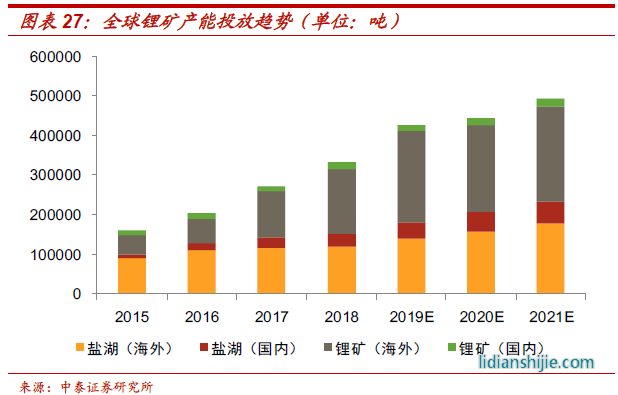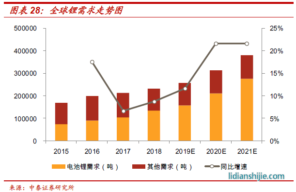 鋰電池需求快速擴(kuò)張:鋰電池廣泛應(yīng)用于新能源汽車及3C數(shù)碼領(lǐng)域,已經(jīng)成為鋰下游最重要的需求領(lǐng)域,用量占比接近60%。在歐洲新能源汽車市場(chǎng)的快速放量推動(dòng)下,我們測(cè)算 2020-2022年動(dòng)力電池鋰需求有望達(dá)到12.1萬(wàn)噸、16.8萬(wàn)噸、23.9萬(wàn)噸;而以3C數(shù)碼為代表的非動(dòng)力電池受益于“5G”換機(jī)潮,未來(lái)三年其鋰需求分別達(dá)到7.6萬(wàn)噸、9.1萬(wàn)噸、9.7萬(wàn)噸,而其他諸如玻璃陶瓷、潤(rùn)滑脂等領(lǐng)域需求維持相對(duì)平穩(wěn)。綜合下來(lái),預(yù)計(jì)2020年我國(guó)鋰礦需求達(dá)到33.1萬(wàn)噸,同比增速22%,需求增速較2019年快速提升8個(gè)百分點(diǎn);