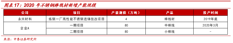 產(chǎn)品定位中高端、供給新增有限:雖然未來(lái)不銹鋼棒線材的需求相對(duì)樂(lè)觀,但若供給端存在較大增量,行業(yè)盈利水平仍有下行可能。由于永興不銹鋼產(chǎn)品定位中高端市場(chǎng),下游對(duì)接諸如三大油企、電力鍋爐廠這樣的大型國(guó)有企業(yè),產(chǎn)品存在較高的認(rèn)證門檻,并且一旦進(jìn)入客戶粘性較強(qiáng),市場(chǎng)份額相對(duì)穩(wěn)定。雖然未來(lái)部分企業(yè)存在一定產(chǎn)能投放計(jì)劃,但由于其坯料來(lái)源海外,在當(dāng)前國(guó)內(nèi)對(duì)不銹鋼反傾銷加大的背景下實(shí)際投放或低于預(yù)期,并且由于新增產(chǎn)能多集中在中低端市場(chǎng)(以制造裝備領(lǐng)域?yàn)橹鳎鋵?duì)石化、電力等高端市場(chǎng)的沖擊更小。我們預(yù)計(jì)受益于在中高端市場(chǎng)的長(zhǎng)期布局,2020年永興噸鋼盈利仍有望維持高位,再考慮到其棒線材產(chǎn)量存在進(jìn)一步提升空間,公司傳統(tǒng)不銹鋼業(yè)務(wù)盈利不降反升的概率較大;