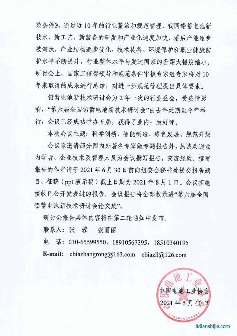 第六屆全國鉛蓄電池新技術研討會第一輪通知 2021-06-26 28110 核心提示:第六屆全國鉛蓄電池新技術研討會第一輪通知 第六屆全國鉛蓄電池新技術研討會第一輪通知 點贊 0舉報收藏 0打賞 0評論 0分享 101 更多>同類鋰電資訊 • 容誠電子落地濟源 萬洋拓展鋰電領域新布局 • 資源稅對鋰礦成本的影響 • 美國轉向油車開始取消亞洲鋰電池訂單,美股鋰電 • 鋰電池打響漲價“第一槍”,德加能源電池系列價 • 感覺未來主流會是大電池增程 • 德方納米榮獲2025年度正極材料優質供應商稱號 • 奔馳正加速推進電動車固態電池上車進程 • 磷酸鐵鋰電池漸成市場主力 • 迷之碳酸鋰庫存 • 鋰電產業鏈周記 | 寧德時代聯手五大車企發布10