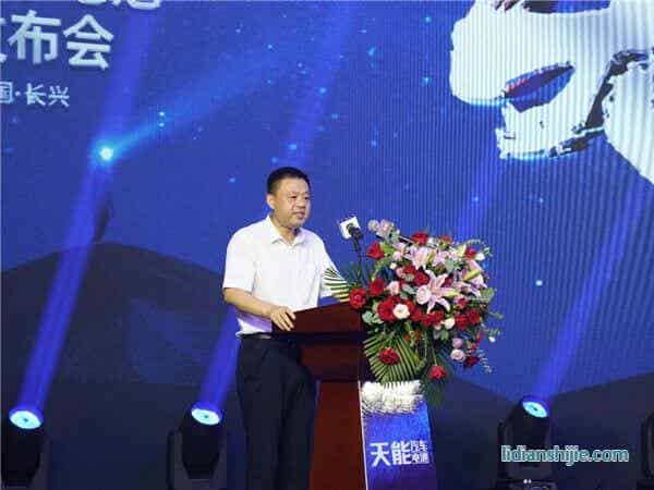 當日下午2點整,新品發布儀式在太湖之濱龍之夢會場如期舉行。天能控股集團副董事長周建中為大會做了慷慨激昂的開場致辭,表達了對現場來賓們的熱烈歡迎并描繪了天能未來發展的宏偉藍圖。