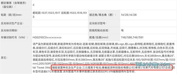 電池方面,申報信息顯示,新車將搭載來自蜂巢能源(電芯)/光束汽車(總成)的三元鋰電池。