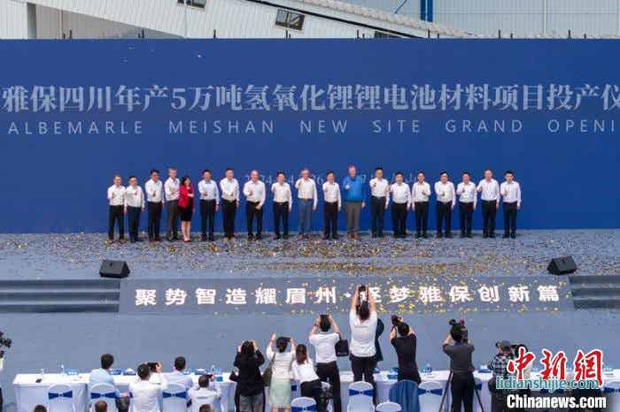 雅保四川年產(chǎn)5萬(wàn)噸氫氧化鋰鋰電池材料項(xiàng)目投產(chǎn)儀式現(xiàn)場(chǎng)。翁光建 攝