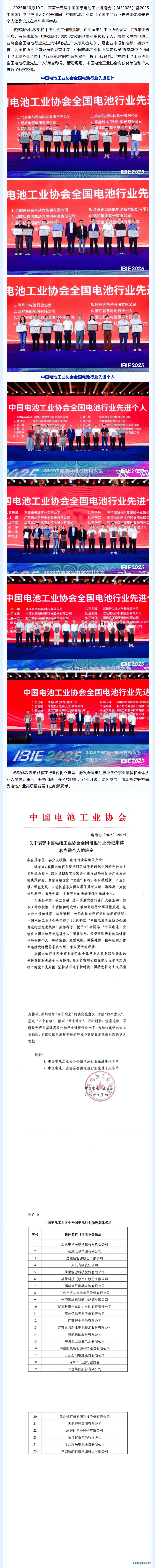 中國(guó)電池工業(yè)協(xié)會(huì)全國(guó)電池行業(yè)先進(jìn)集體和先進(jìn)個(gè)人頒獎(jiǎng)儀式在深隆重舉辦